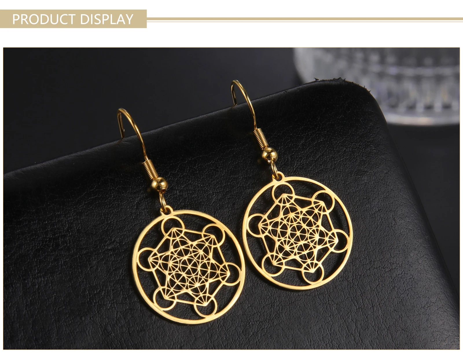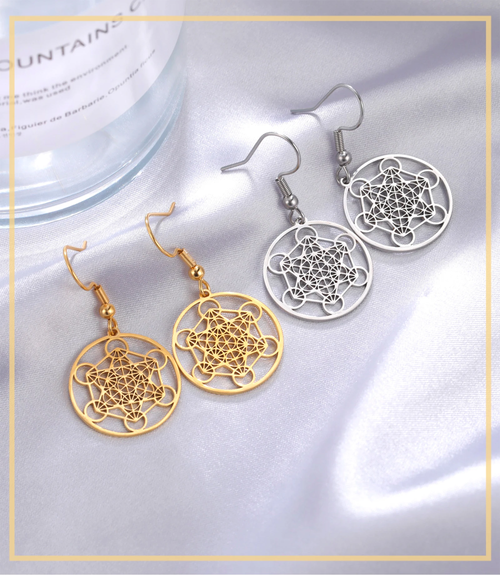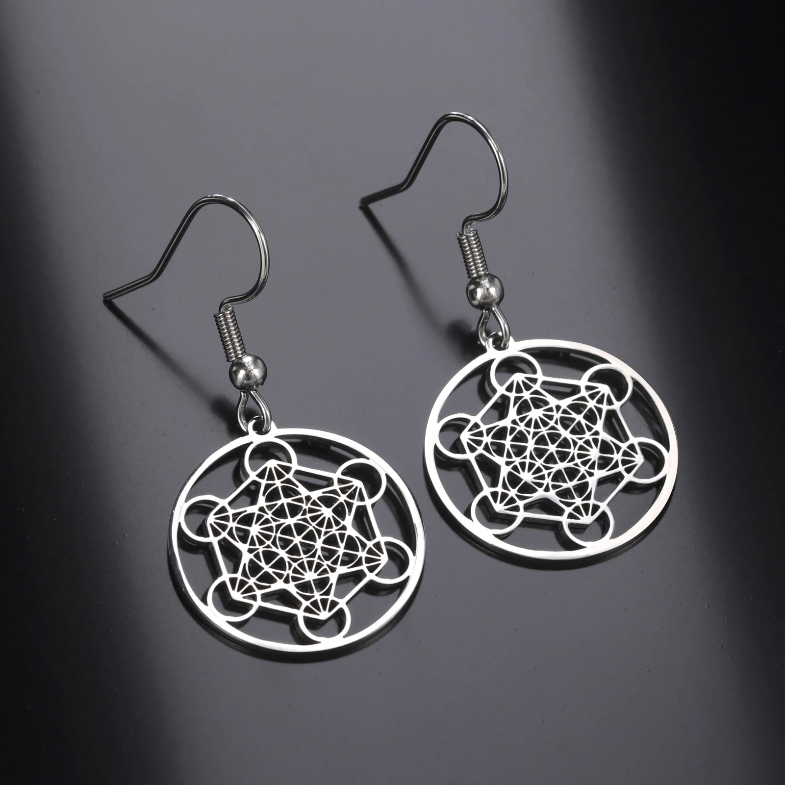 Skyrim Metatron Cube Dangle Earring for Women Stainless Steel Amulet Sacred Geometry Drop Earrings Spiritual Jewelry 2025