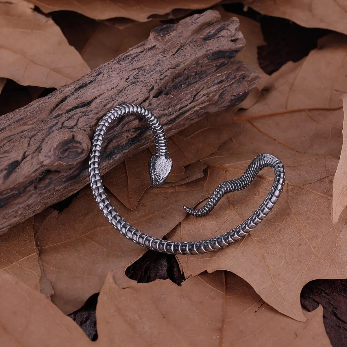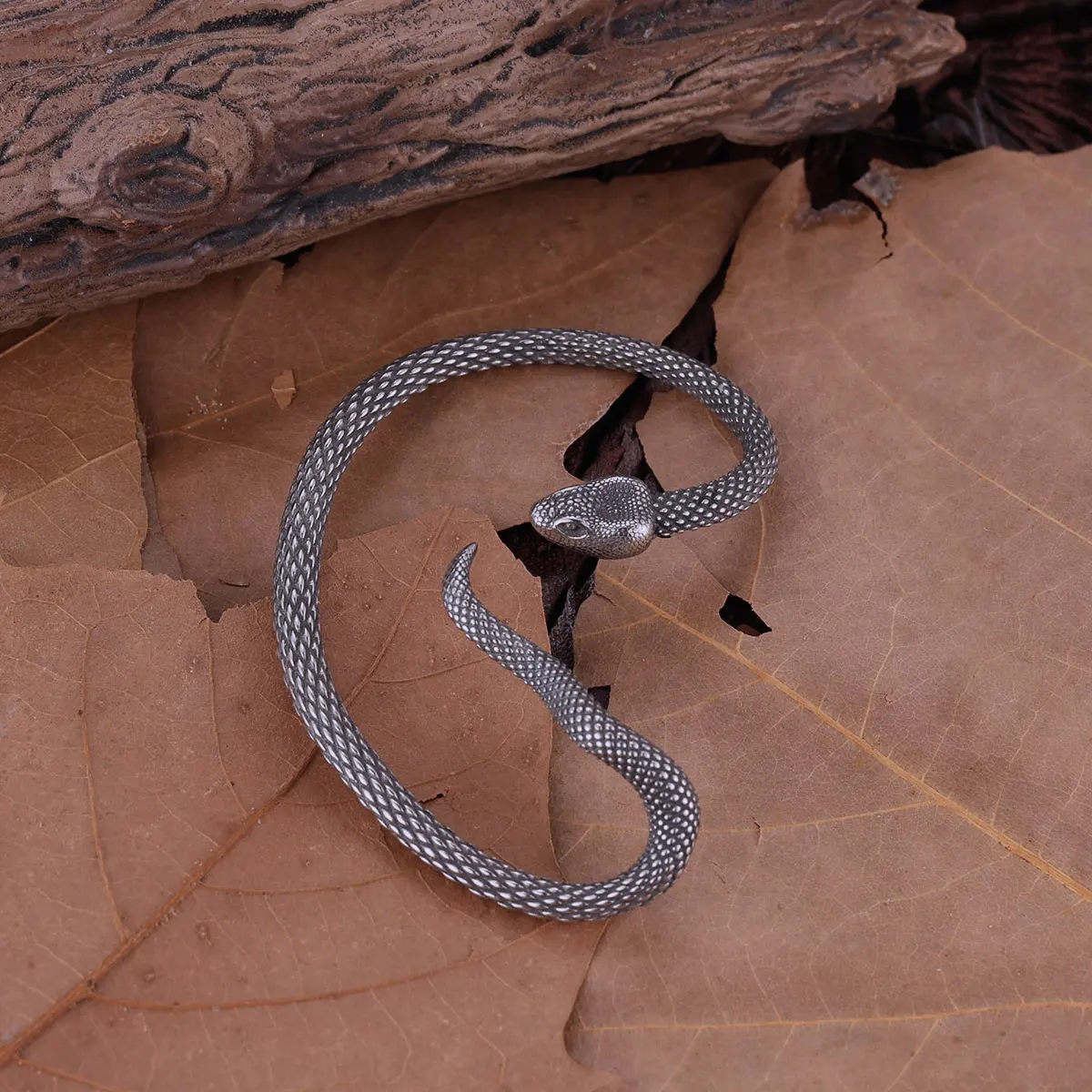 This stainless steel ear cuff curves gracefully along the ear in the form of a serpent, requiring no piercing for wear. Durable yet elegant, it carries both edge and mysticism — a statement piece that blends modern design with ancestral symbolism. The serpent has long been tied to Santa Marta la Dominadora, representing her mastery, protection, and transformative power. Wearing this cuff is both adornment and quiet invocation, a reminder of strength and spiritual guidance.